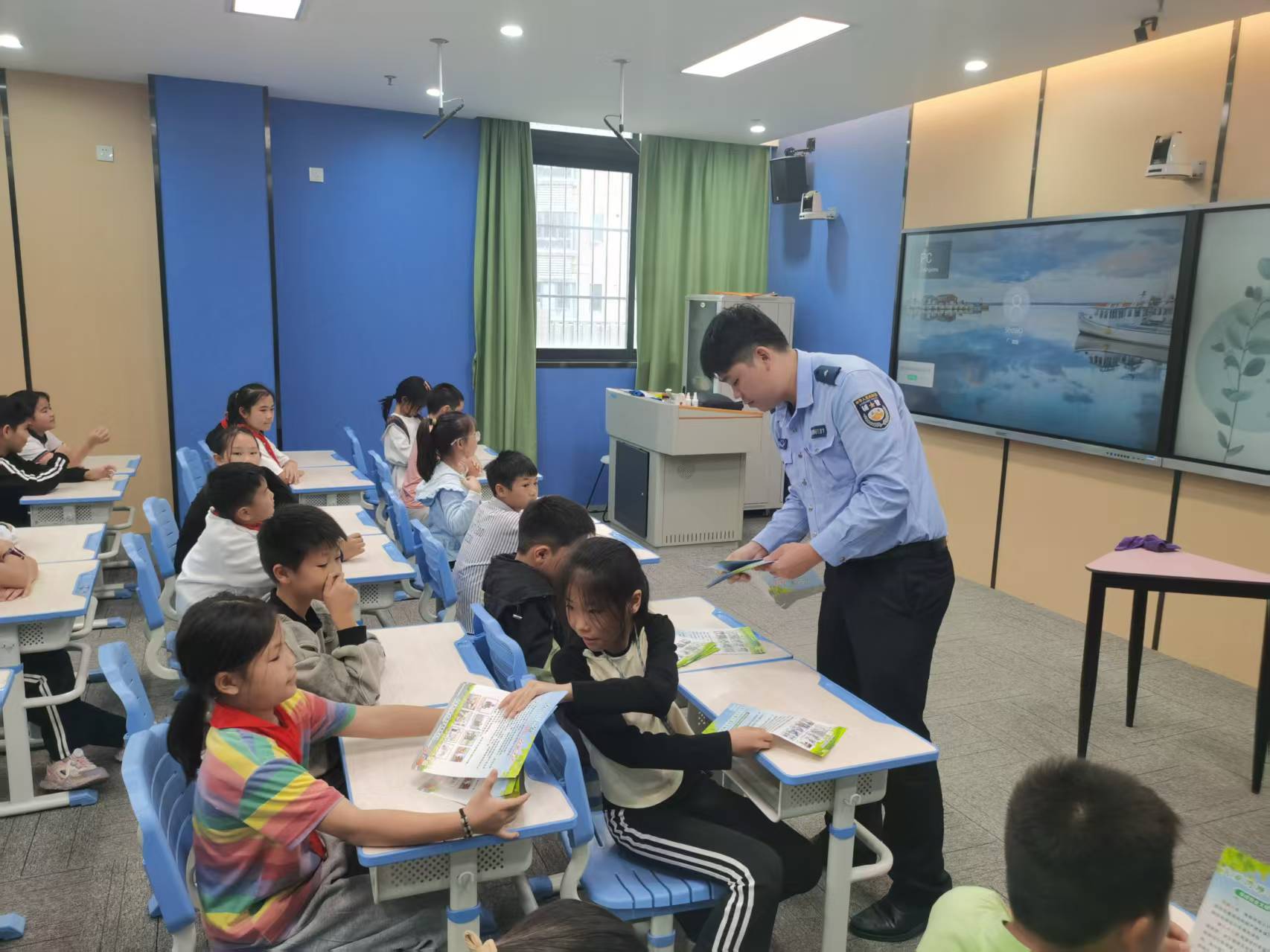 民警还强调了乘坐交通工具的安全问题,提醒同学们要选择正规的交通工具,不乘坐无牌无证、超员超载的车辆,乘坐私家车时要系好安全带,乘坐电动车时要正确佩戴安全头盔。此外,民警还与现场学生进行了互动交流,通过提问抢答的方式,引导同学们主动思考交通安全知识,进一步加深了大家对交通规则的理解和记忆。此次活动,共计发放宣传单张200余张。
