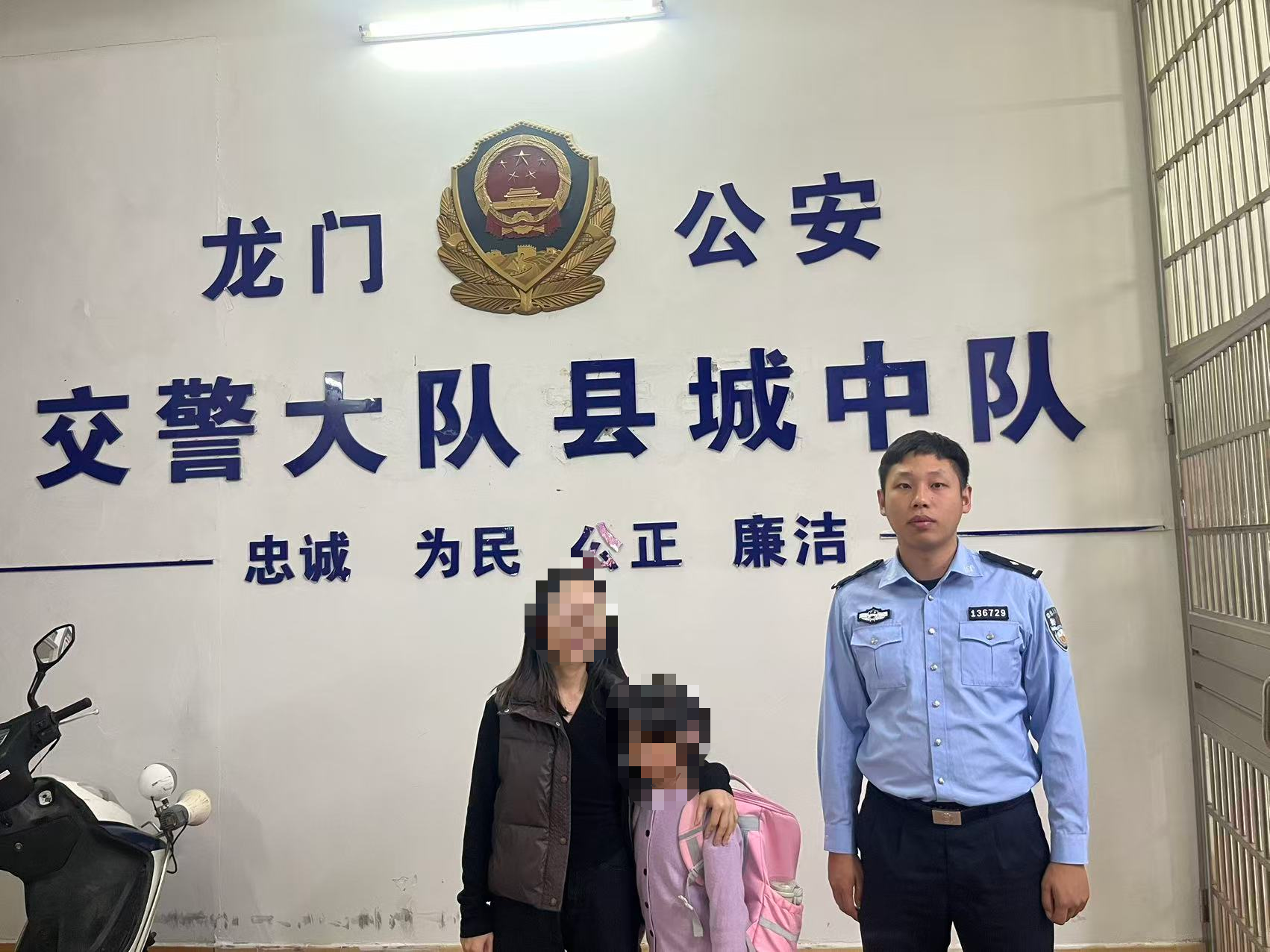 10月24日17时许,一位热心群众将一名女孩交到惠州市公安局交通管理支队江南大队执勤民警手中,称在路边发现小女孩独自一人,身边没有家长陪伴,怀疑迷路了,其担心小女孩有危险,便将小女孩托付给正在学校附近开展执勤工作的民警。